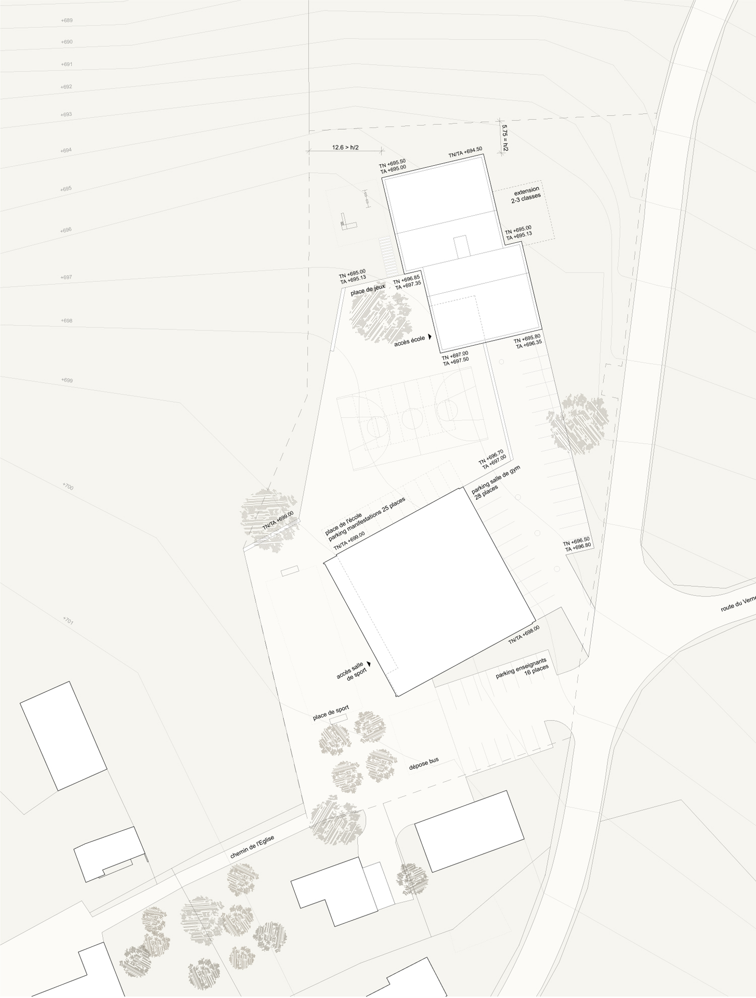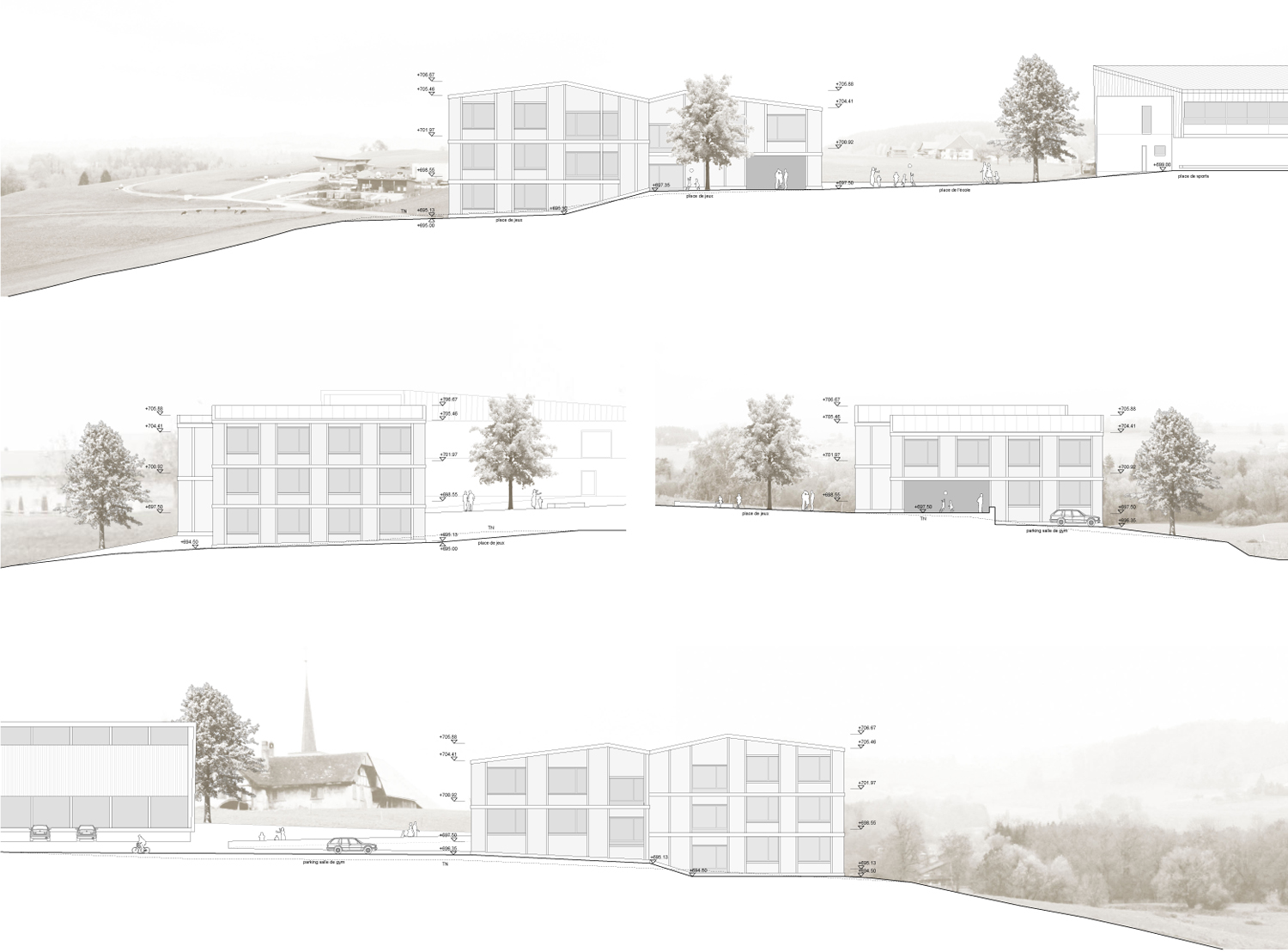 Concours 2014, 2e prix Lieu: Orsonnens (FR) Maître de l'ouvrage: Commune de Villorsonnens Notre équipe: Tomàs de Riba, Yves Beetschen, Kristina Sylla Widmann, Marc Widmann