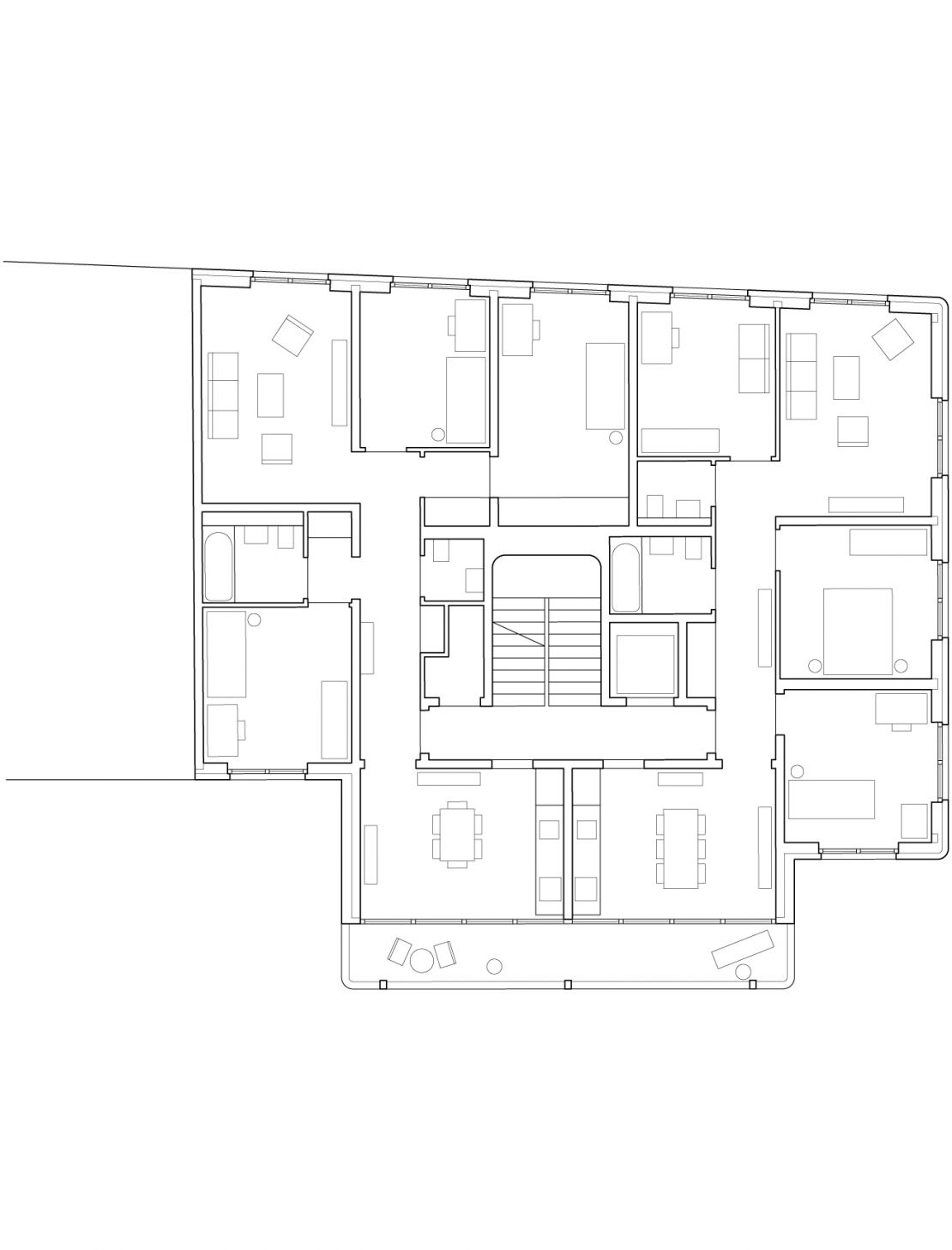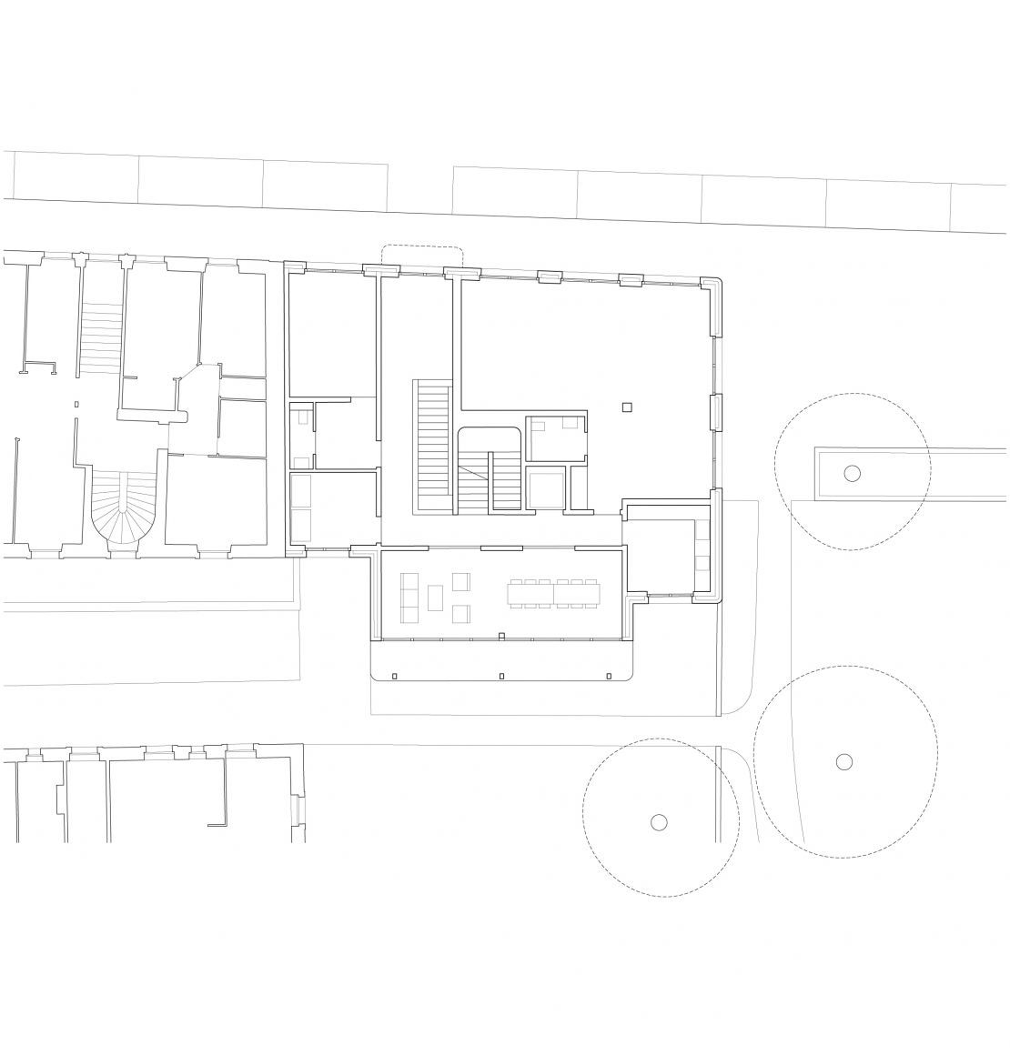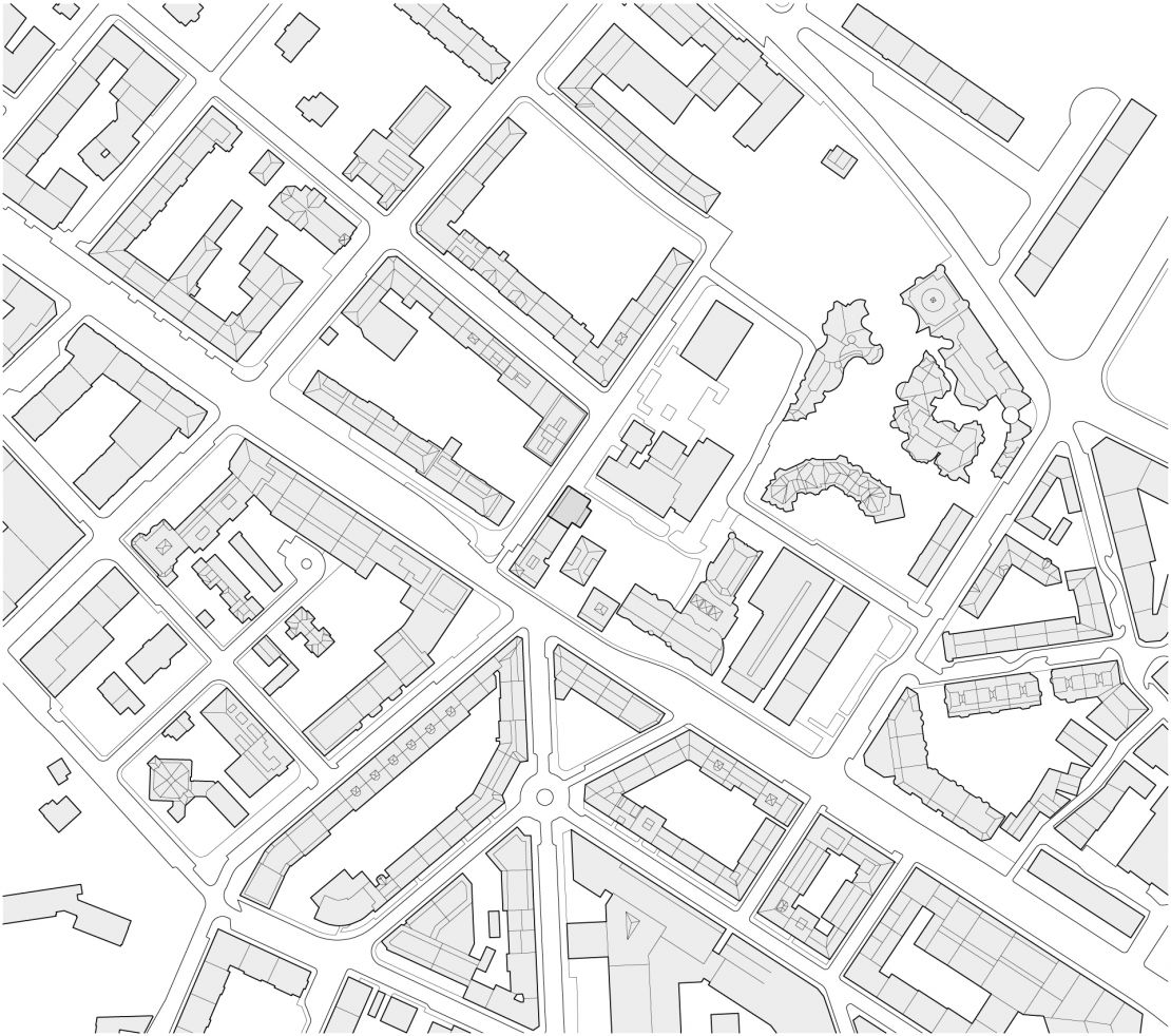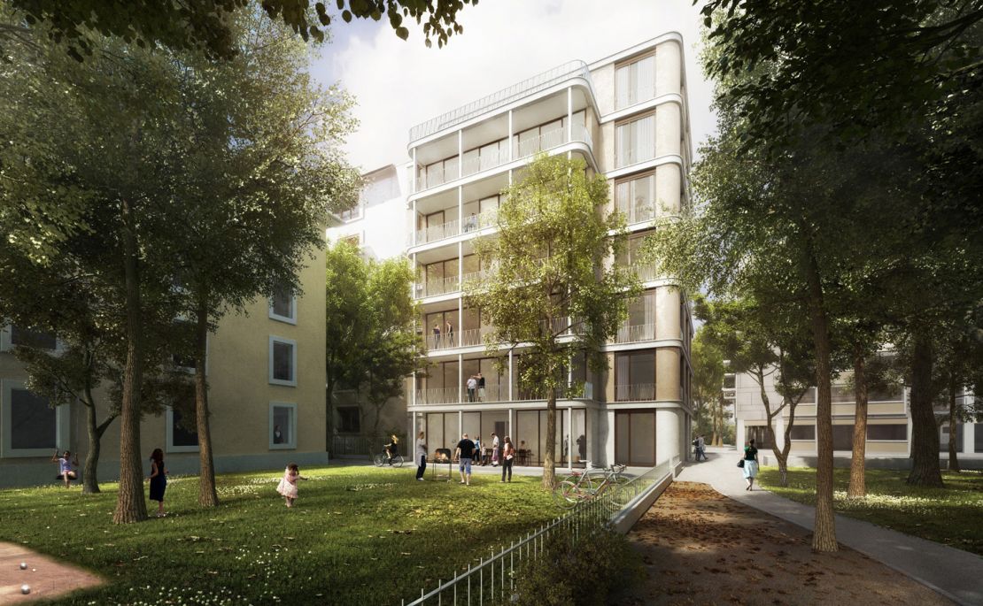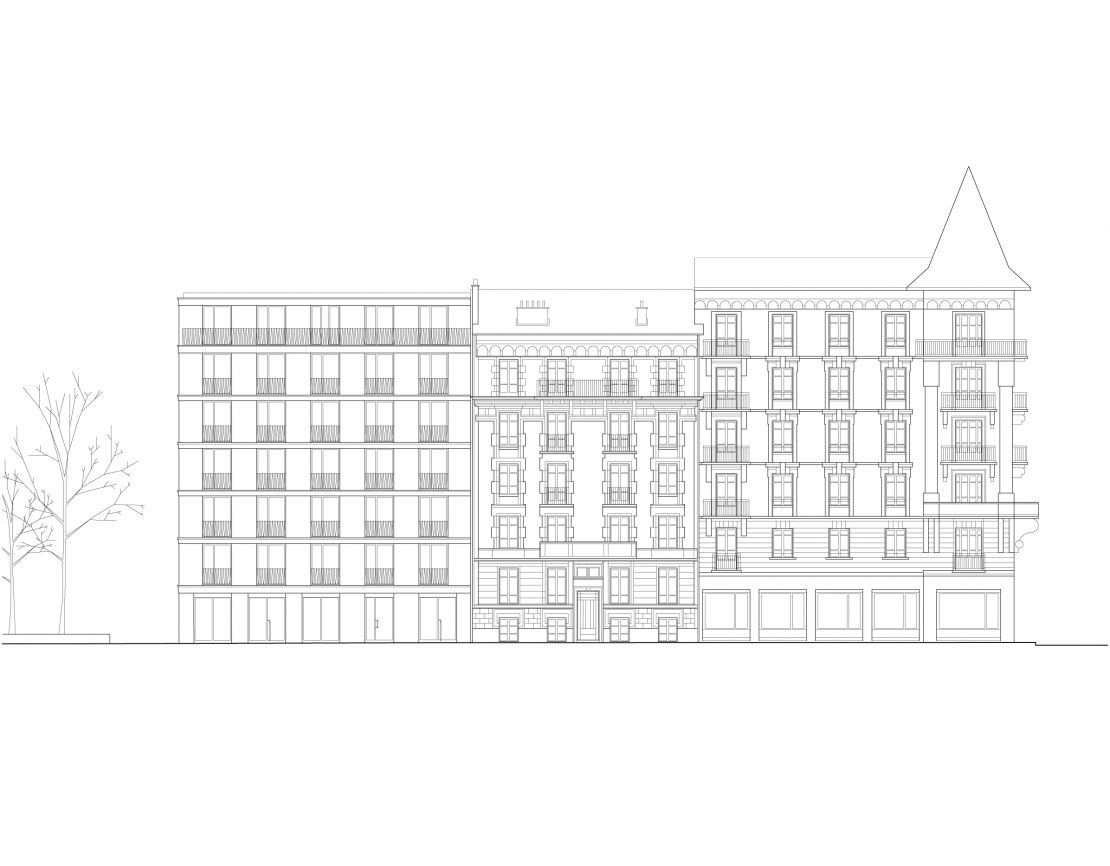 Le bâtiment complète l'amorce d’un îlot ouvert inachevé, comprenant un pavillon central. Côté rue, le projet se place dans le prolongement du front de rue et s'aligne sur les immeubles voisins. Côté cour, une galerie aux angles arrondis s'avance et met en relation le bâtiment avec une cour-jardin. Ce volume abrite aussi bien les locaux communs à l’échelle de l’immeuble : salle commune, pièce indépendante buanderie; que du logement : cuisine-vérandas prolongées par un balcon.
