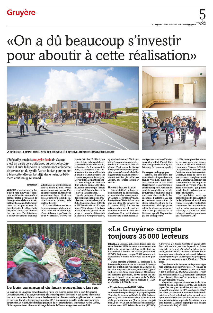Nouvelle Ecole de Vaulruz (FR) ©La Gruyère